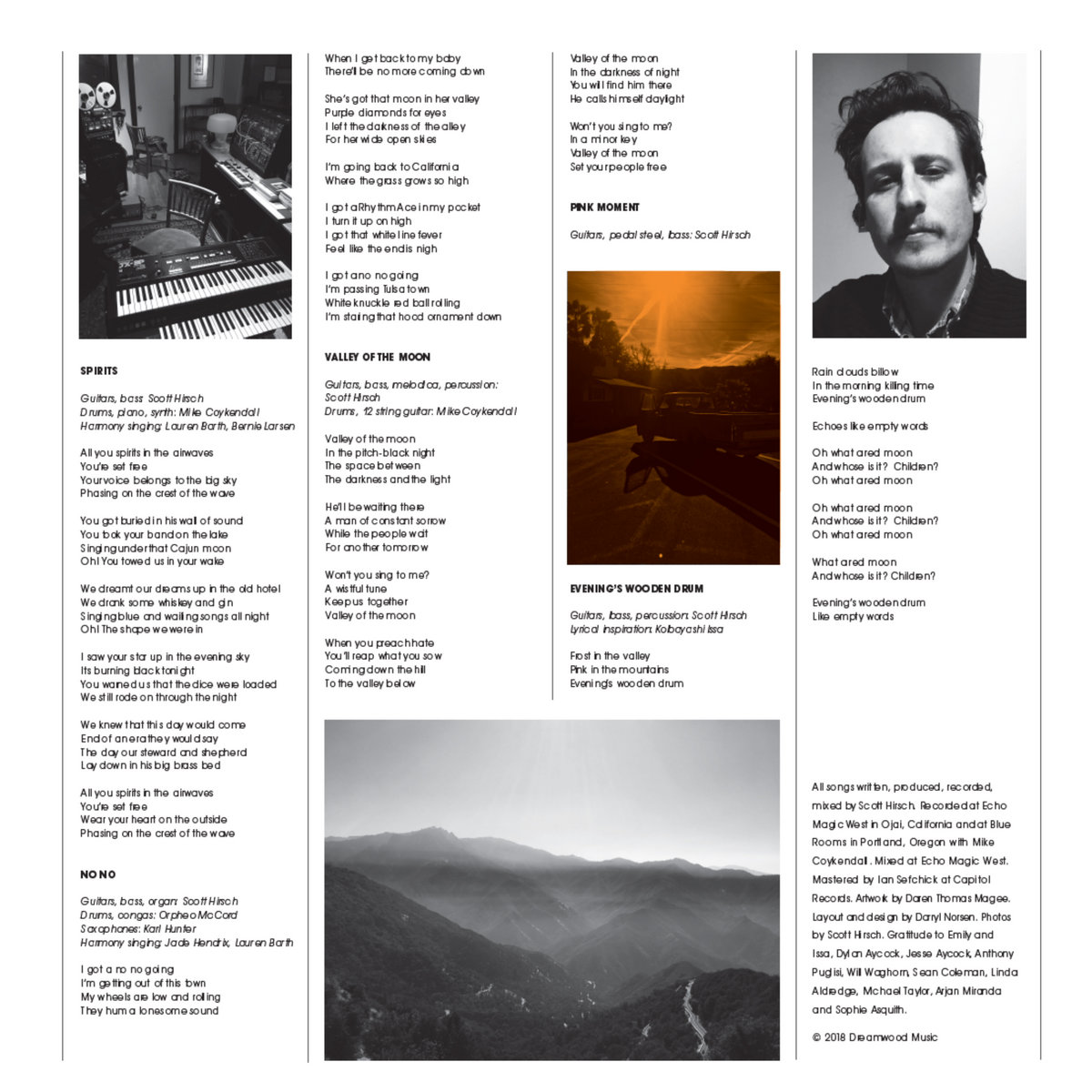 As a founding member of Hiss Golden Messenger, Scott Hirsch lent his sonic imprint on their productions, as well as shaping the sound of the live outfit, having toured heavily through the formative years of the band. His First solo record, Blue Rider Songs was released in 2016. On his second record, Lost Time Behind the Moon, his production tones and songwriting talents are in full bloom. ... more